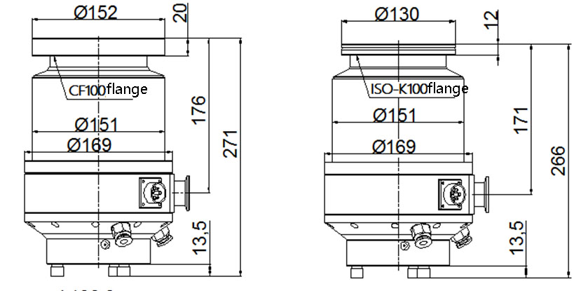 EV-300Z Grease lubricated water-cooled molecular pumps-shape dimensions, mounting connection dimensions
