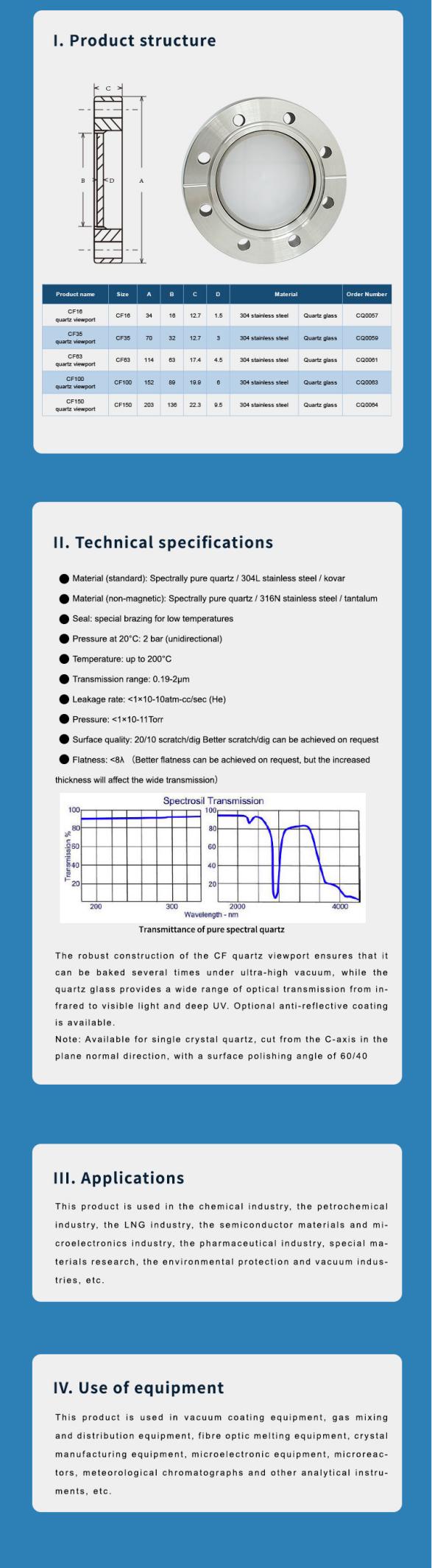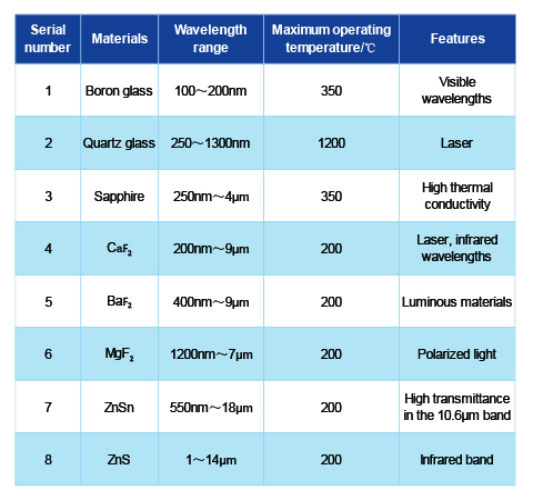 Optical glass or quartz glass will be used for the viewport that transmits light. The following are some of the commonly used materials for optical viewports.